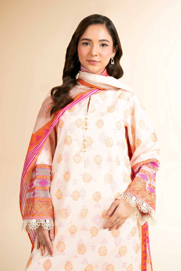 Soft hues meet bold expressions in this digitally printed and embroidered unstitched three-piece suit from our latest summer collection, a perfect blend of subtle elegance and striking style. Product Detail:Paisley...