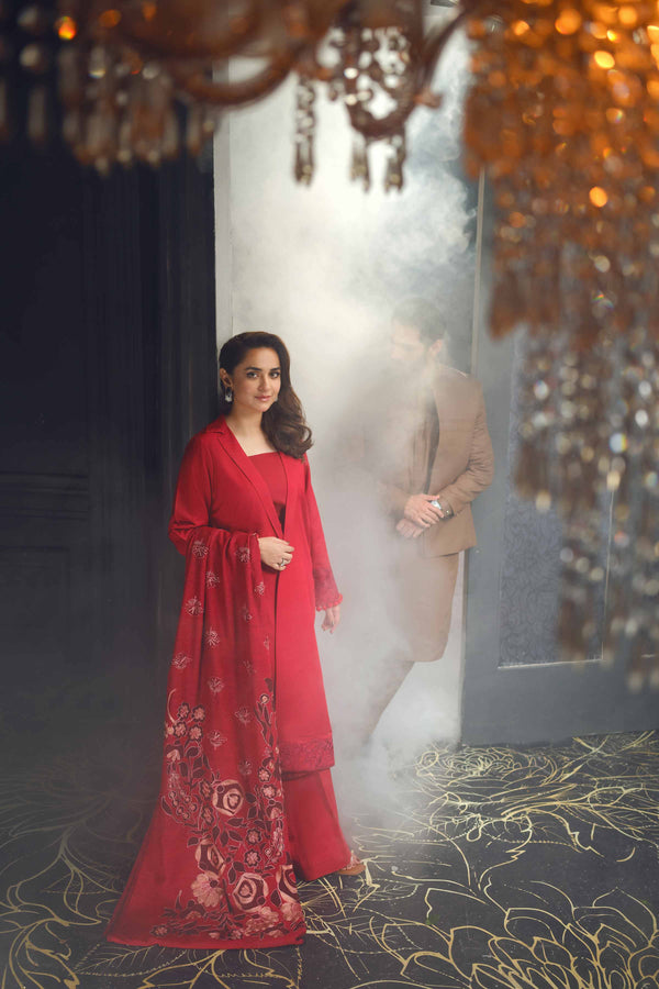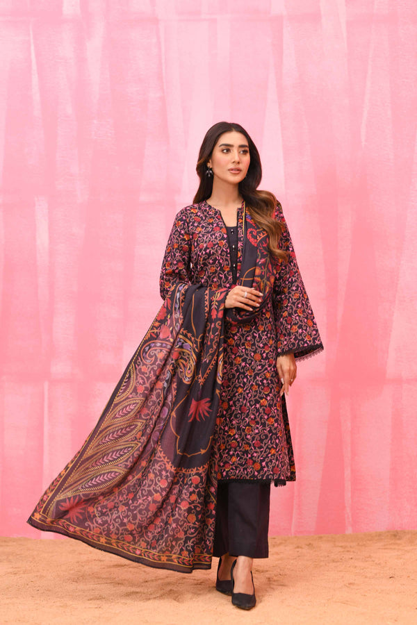 Timeless comfort, cultural artistry with this digitally printed embroidered three-piece from the latest unstitched Winter Collection. Product Detail:Ethnic Style Shirt with Dupatta & Trousers SHIRTEmbroidered Neckline: 1 PieceDigital Printed Khaddar...