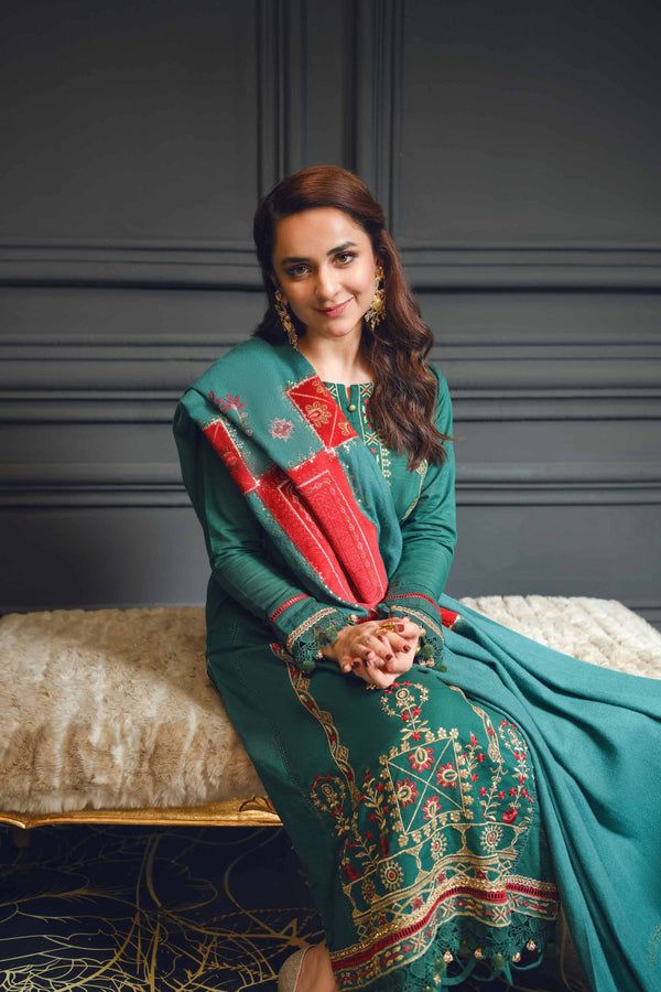 Crafted for vibrant style, inspired by tradition with this printed embroidered three-piece from the latest unstitched Winter Collection. Product Detail:Floral Style Shirt with Shawl & Trousers SHIRTEmbroidered Neckline: 1 PieceEmbroidered...