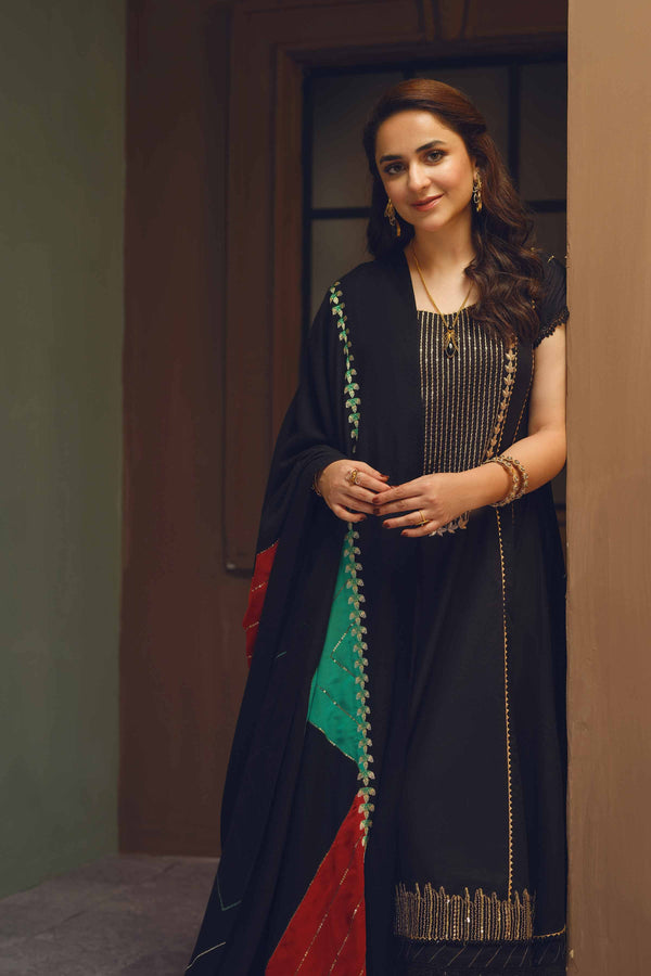Threads of history, styled for tomorrow with this digitally printed embroidered three-piece from the latest unstitched Winter Collection. Product Detail:Tribal Motifs Style Shirt with Shawl & Trousers SHIRTEmbroidered Neckline: 1...