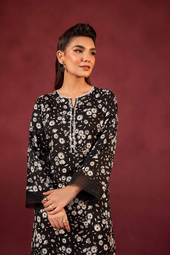 Achieve a graceful look intricate embroidery and classic prints ensure an elegant silhouette that will make a statement in any occasion with this printed embroidered two piece suit from the latest unstitched winter collection.