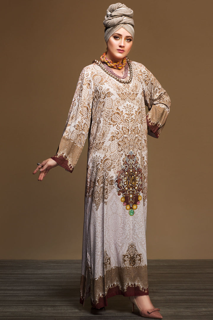 DW19-25 Beige Printed Stitched Fustaan - 1PC