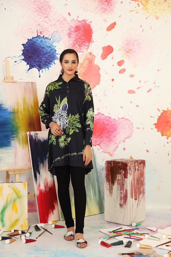 Get an essential graceful look in this printed tunic with drop shoulders and button detail on the placket and cuffs from latest fusion Summer 2021 collection by Nishat Linen.
