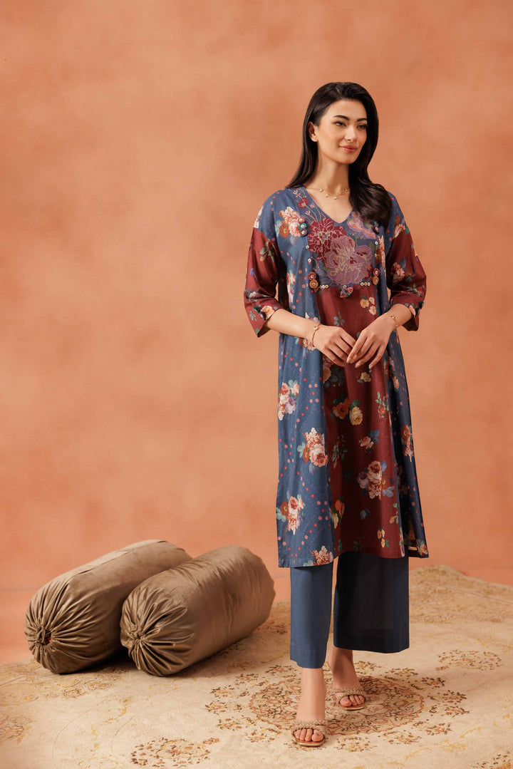 2 Piece - Printed Embroidered Suit - KFE25-152