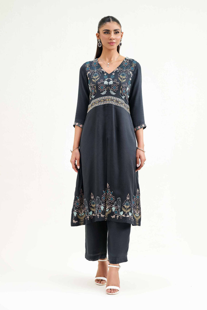 Get the most iconic look by wearing this embroidered two-piece suit from the latest luxury pret summer collection.