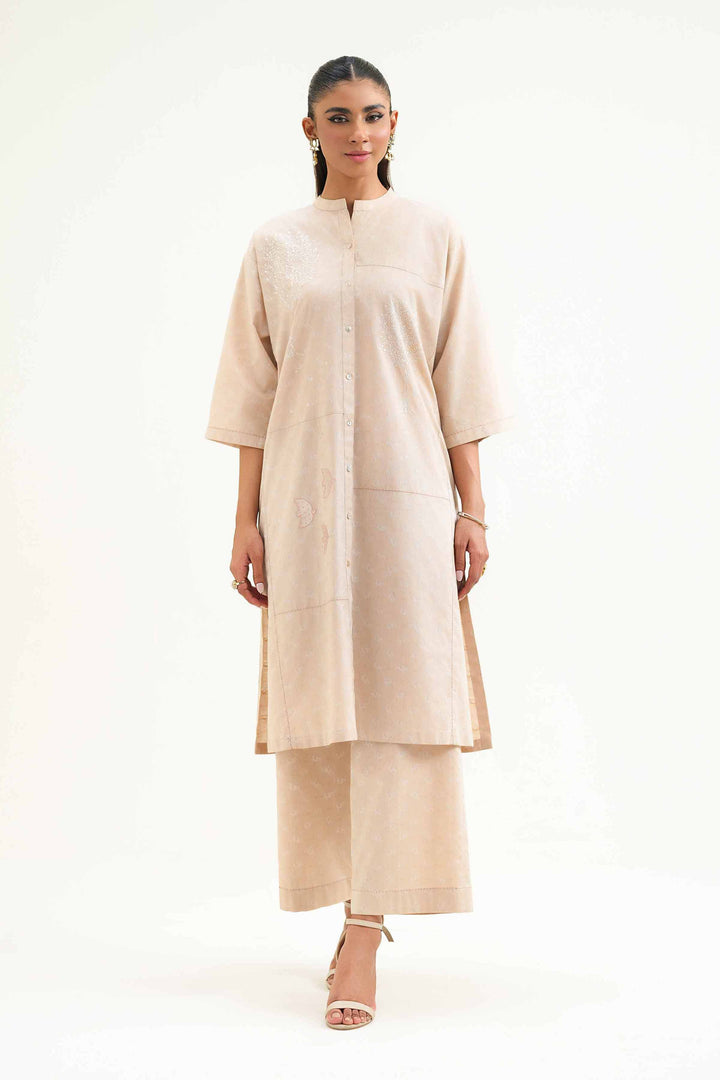 Band Neckline With Buttons Detail On Placket, Embroidered Front, Long Front Open Shirt