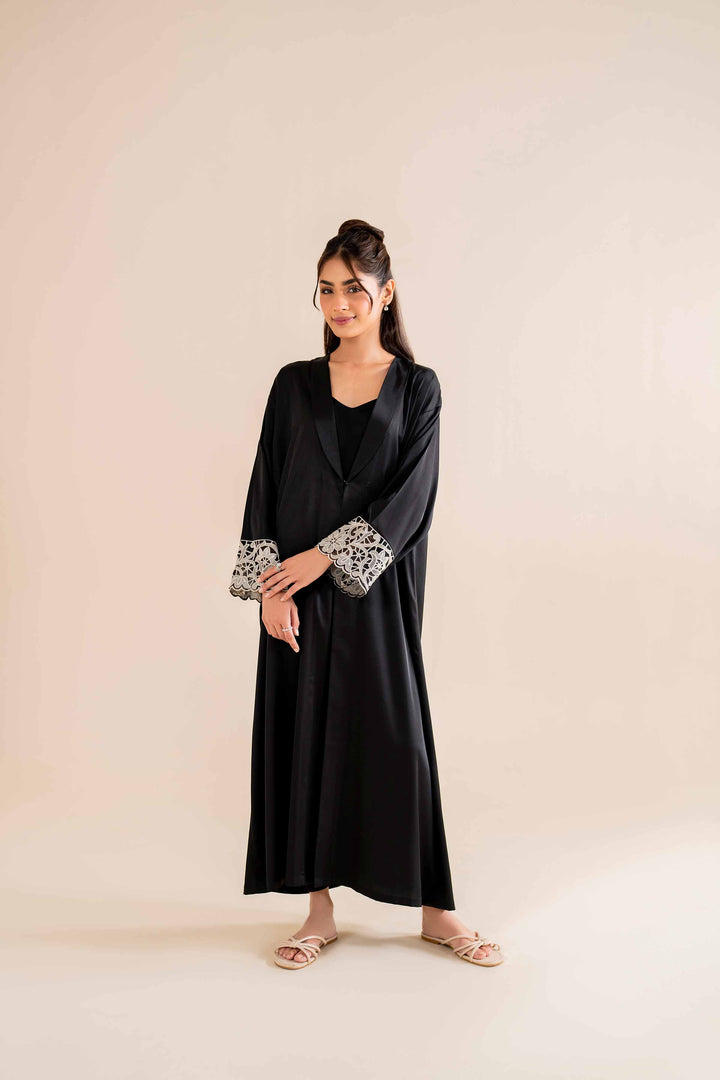 Lapel Collar Neckline, Net Sleeves Edges
