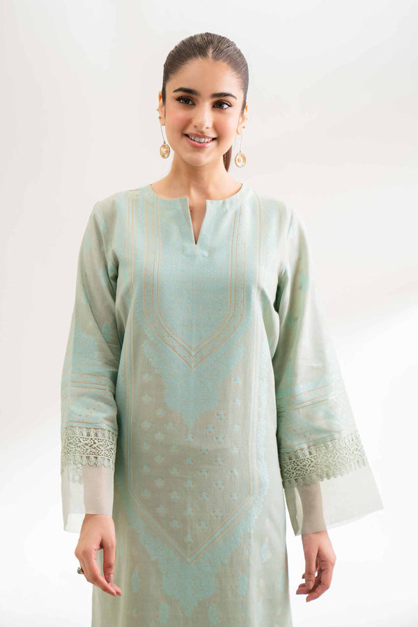 Fashion that feels like home with this embroidered two-piece from the latest unstitched Winter Collection. Product Detail:Lace Cut Style Shirt with Trousers SHIRTEmbroidered Solid Karandi Shirt Front: 1 PieceSolid Karandi...