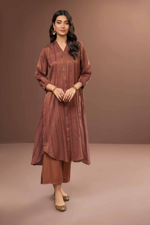 Elevate your fashion game with our forward-thinking basic two-piece suit from the latest Pret Winter Collection. Product DetailBasic Tunic With Pants TunicButton-down tunic featuring a band neckline and pleated voluminous...