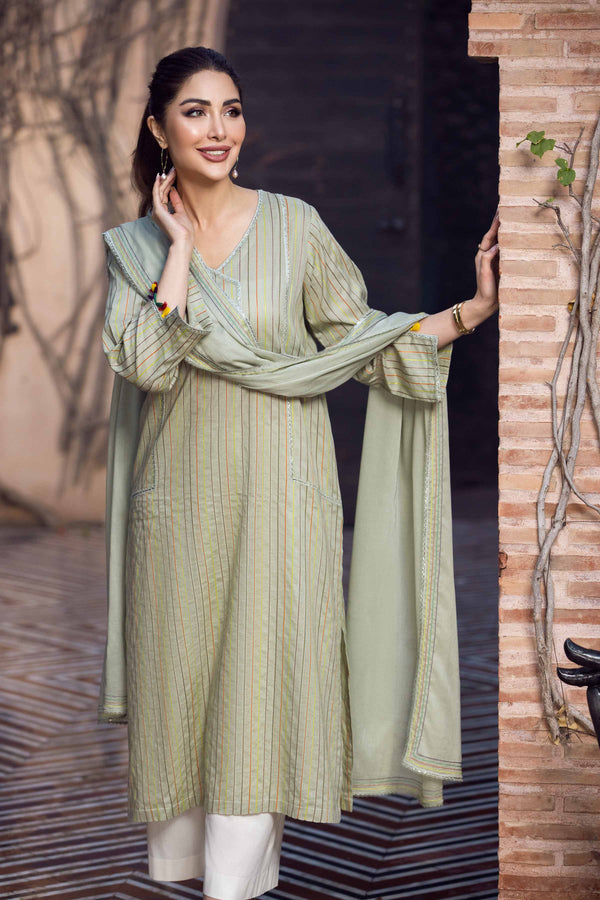 Elevate your Winter wardrobe with this basic two-piece suit from the latest Pret Winter Collection, combining bold prints, breathable fabric, and effortless elegance for a standout seasonal look. Product DetailBasic...