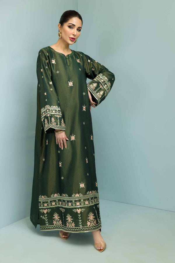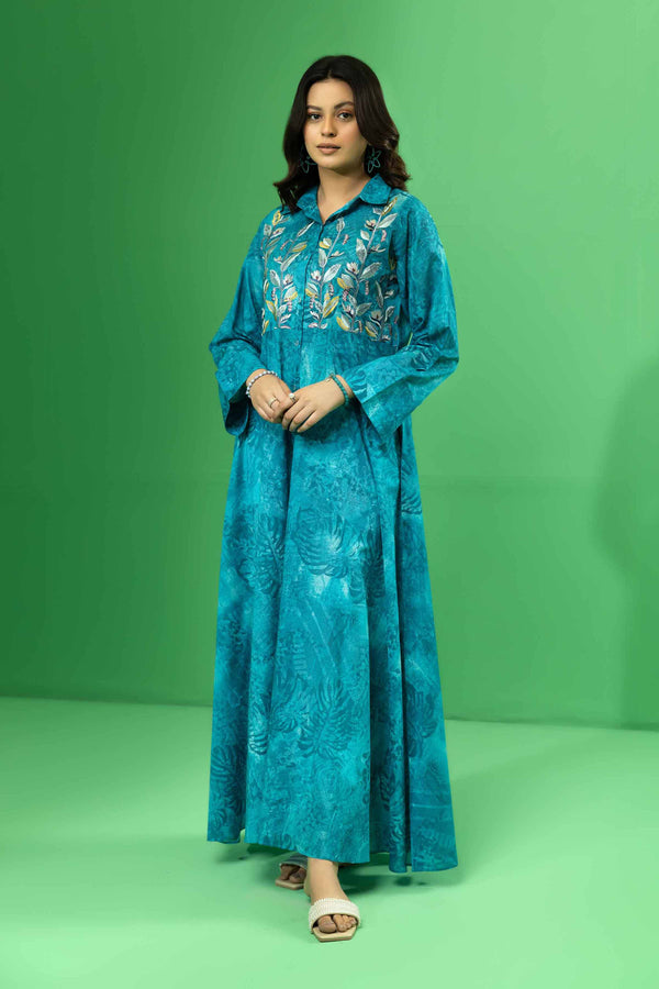 Get a semi-formal look by wearing this embroidered fustaan from the latest fustaan summer collection. Product DetailEmbroidered Fustaan FustaanRound Neckline with Long V Placket, Embroidered Front & Sleeves, Dual Side...