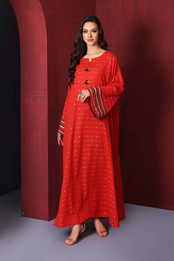 Upgrade your winter wardrobe with this embroidered dress from the latest Pret Winter Collection, designed for timeless elegance. Product DetailEmbroidered Dress DressA long dress with V neckline, kimono style sleeves...