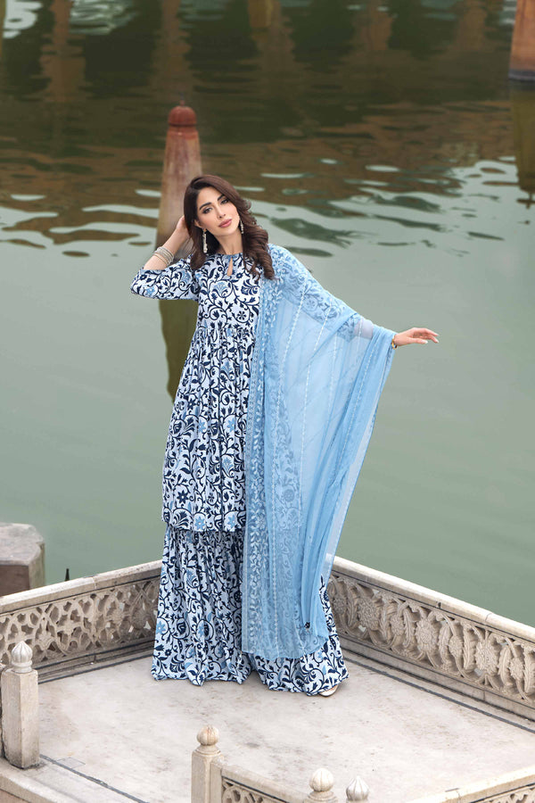 Make a statement this season in this printed three-piece suit from the latest Luxury Pret Winter Collection, featuring intricate craftsmanship and timeless style. Product DetailPrinted Shirt With Dupatta & Culottes...