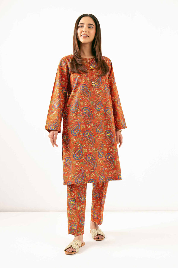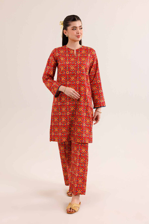 Invest in your fashion journey with this printed two piece suit from the latest pret winter collection. Product Detail Printed Shirt With Trousers Shirt Round Neckline With V Slit, Printed...