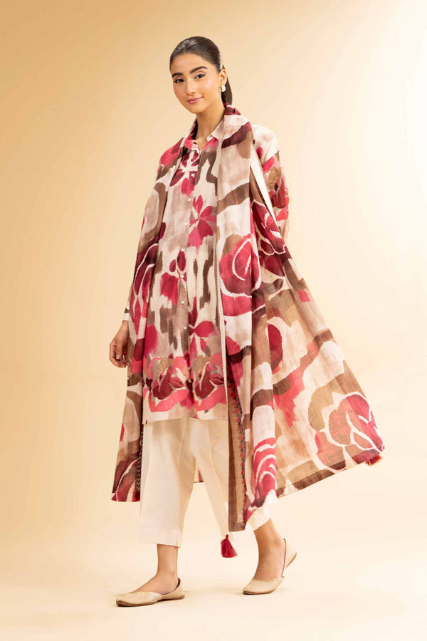 3 Piece - Printed Embroidered Suit - 42501081