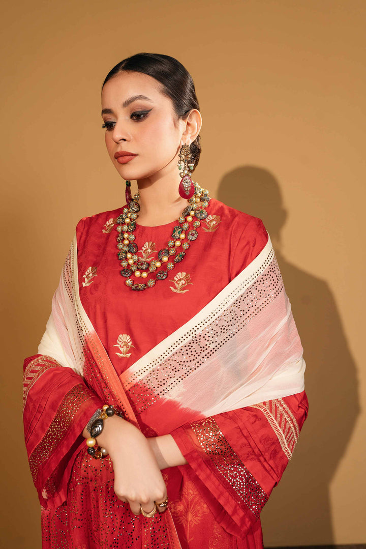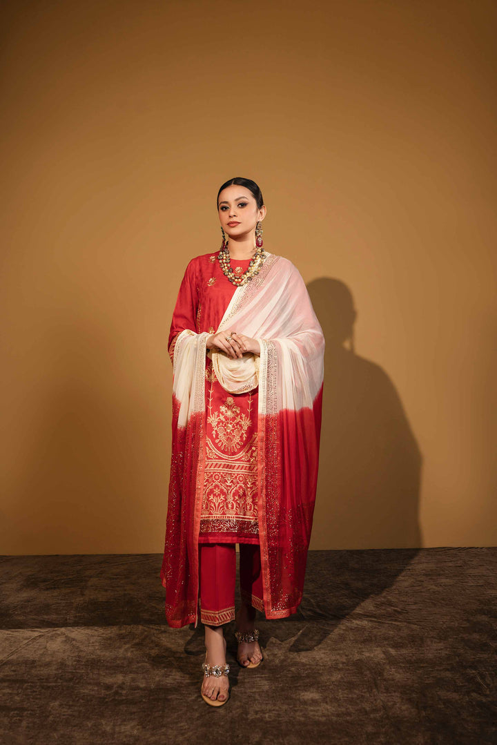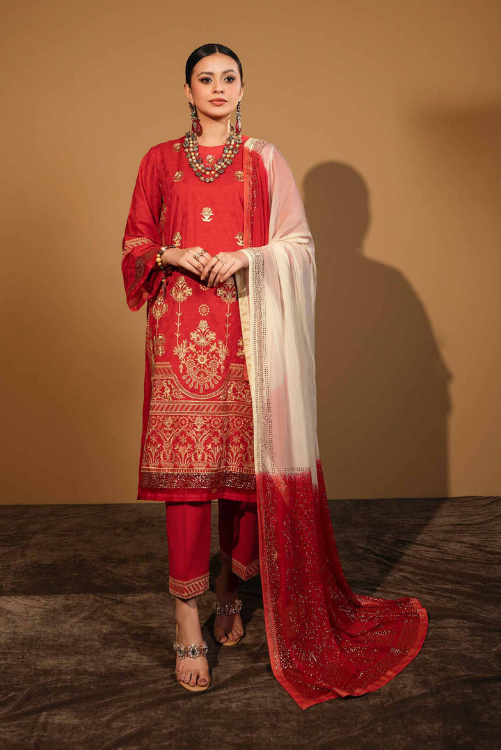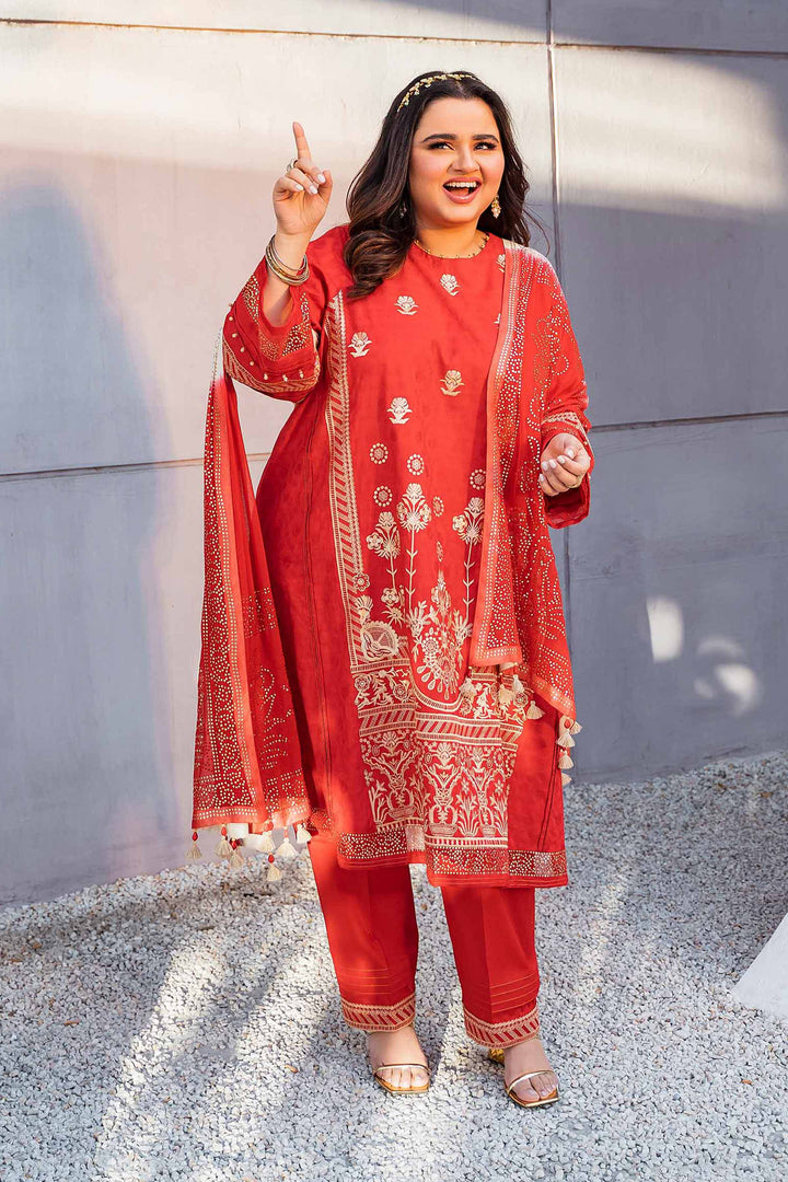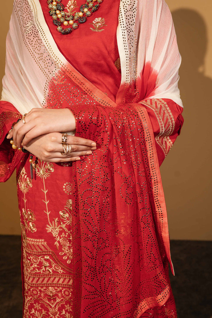 Make a sublime summer appearance with printed embellished three-piece from the latest unstitched summer collection.