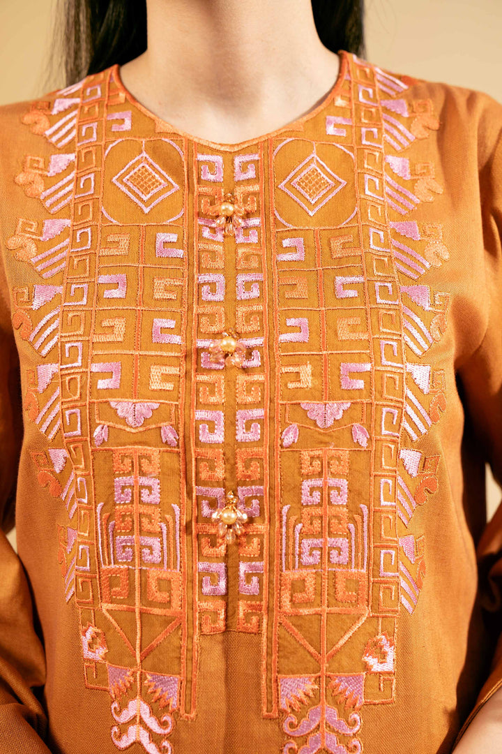 Elevate your daily style with this embroidered three-piece from the latest unstitched winter collection.