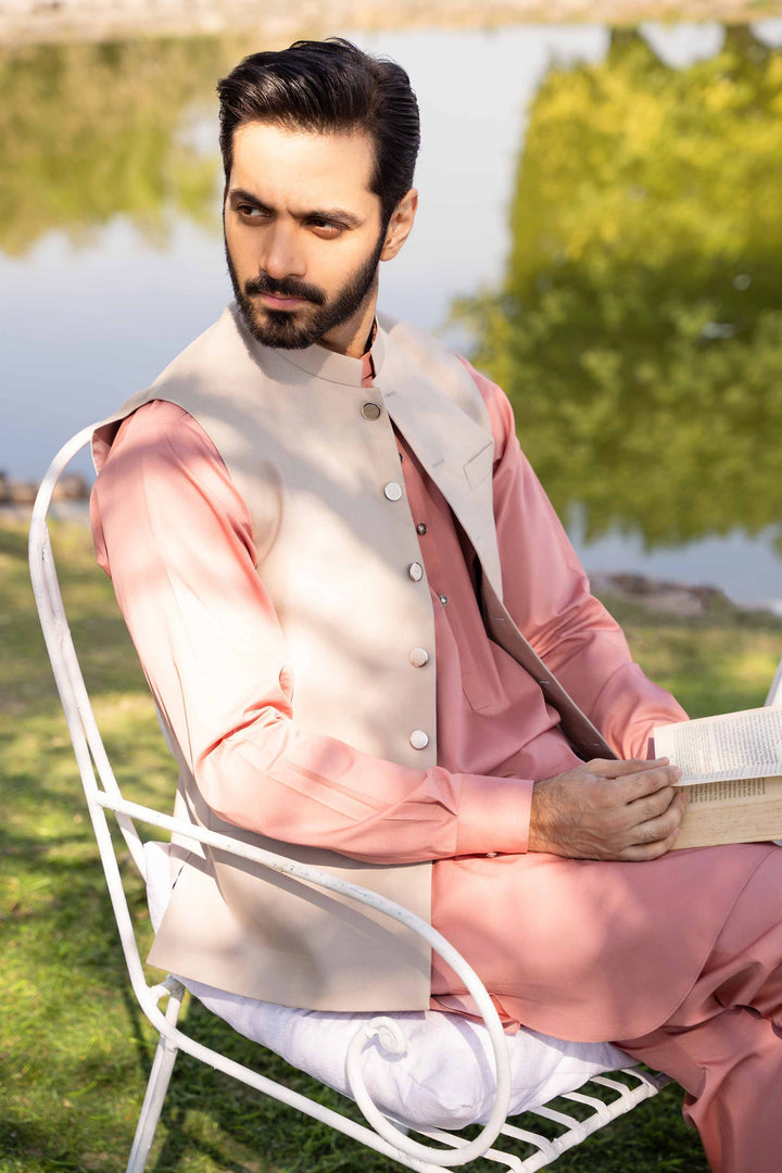 Immerse yourself in a new style with this two piece suit from the latest men's unstitched summer collection.