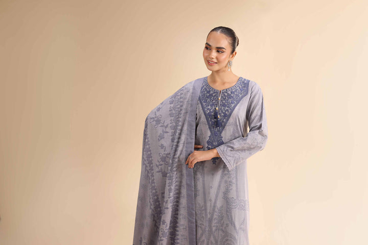 Craft your perfect look with this versatile jacquard embroidered three-piece from the latest unstitched summer collection.