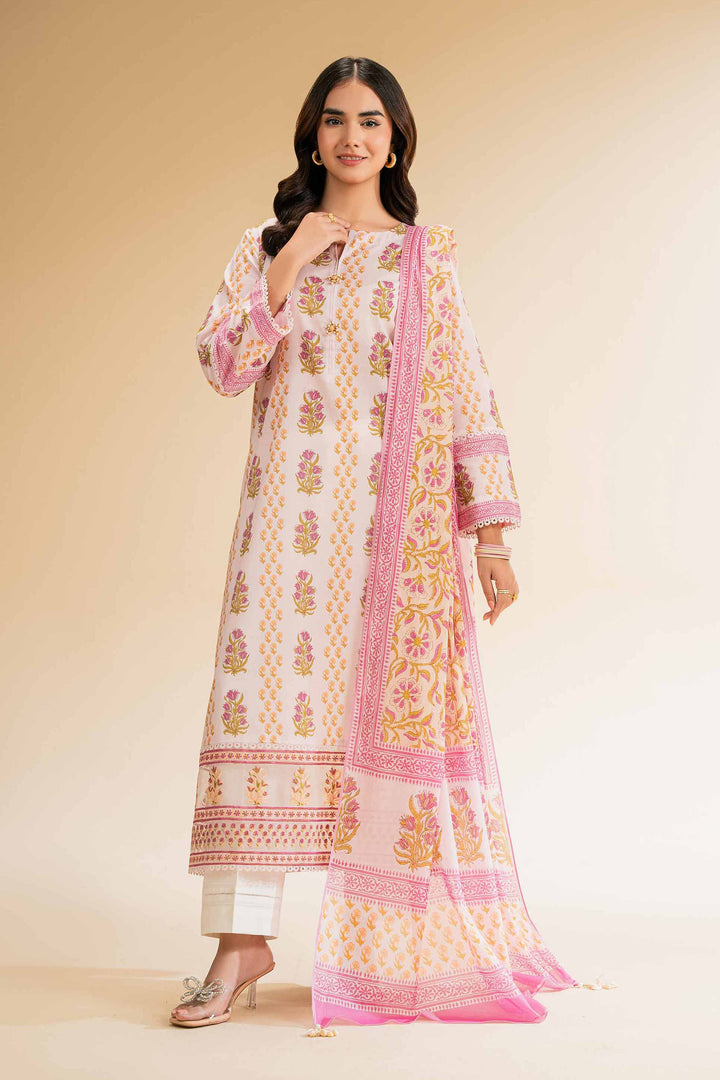 Wear your confidence with our bold printed embroidered two-piece from the latest unstitched summer collection.