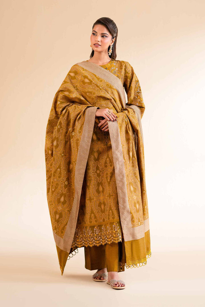 Reveal your bold side with this jacquard embroidered three-piece from the latest unstitched summer collection.