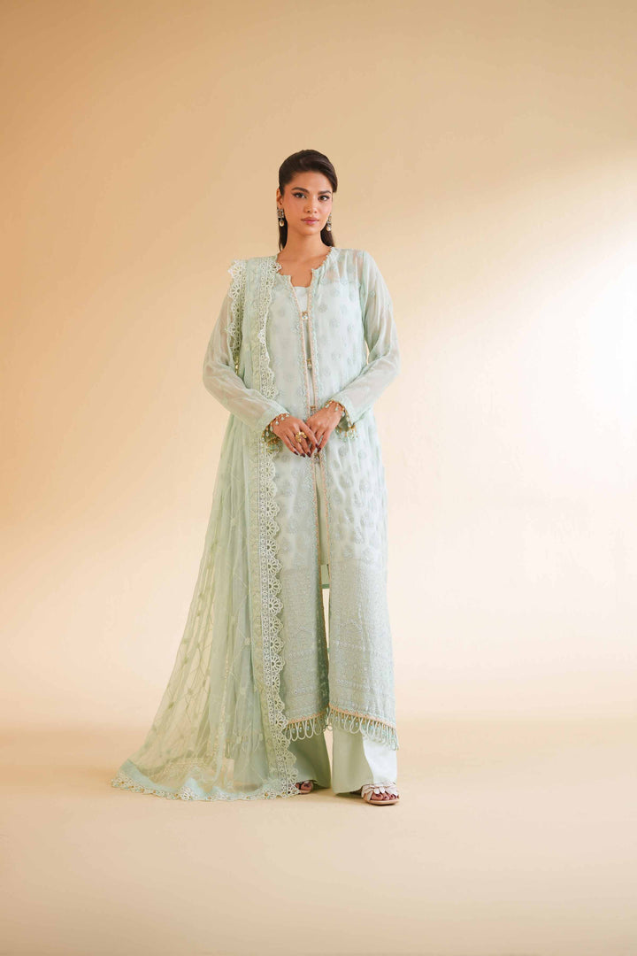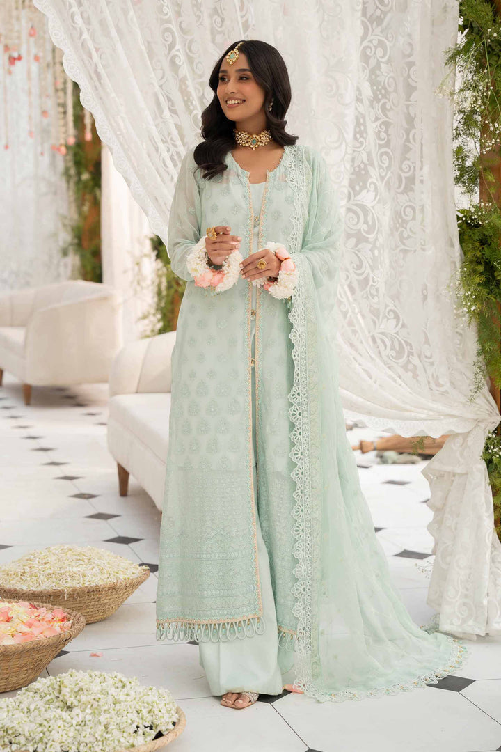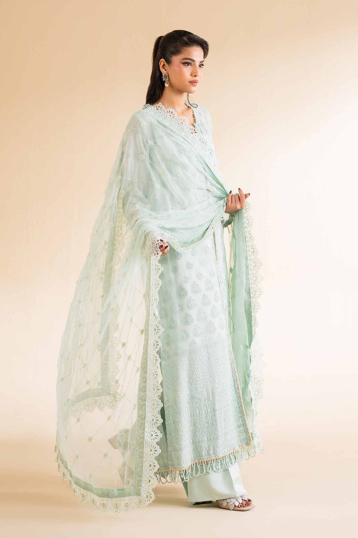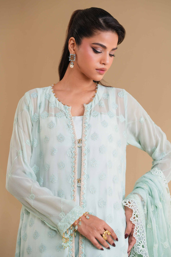 Reveal your bold side with this dyed embroidered three-piece from the latest unstitched summer collection.
