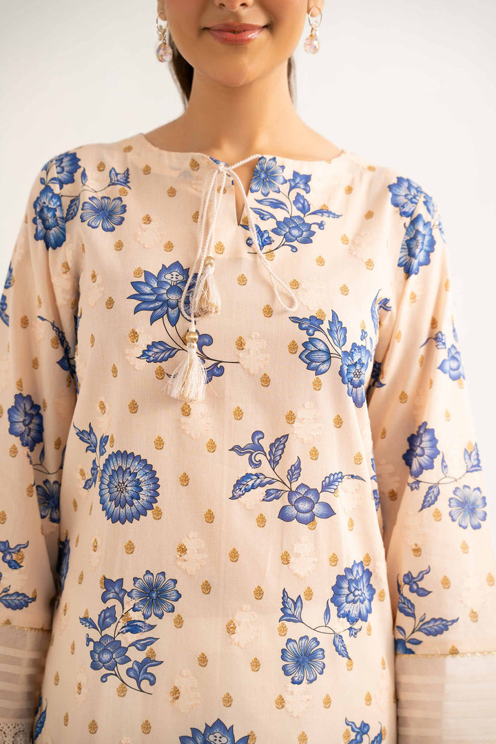 Upgrade your wardrobe with this stylish digital printed embroidered three-piece suit from the latest unstitched summer collection.