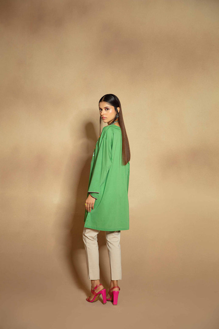 Stylized V Neckline, Embroidered Neckline & Sleeves Edges, Drop Shoulder Tunic