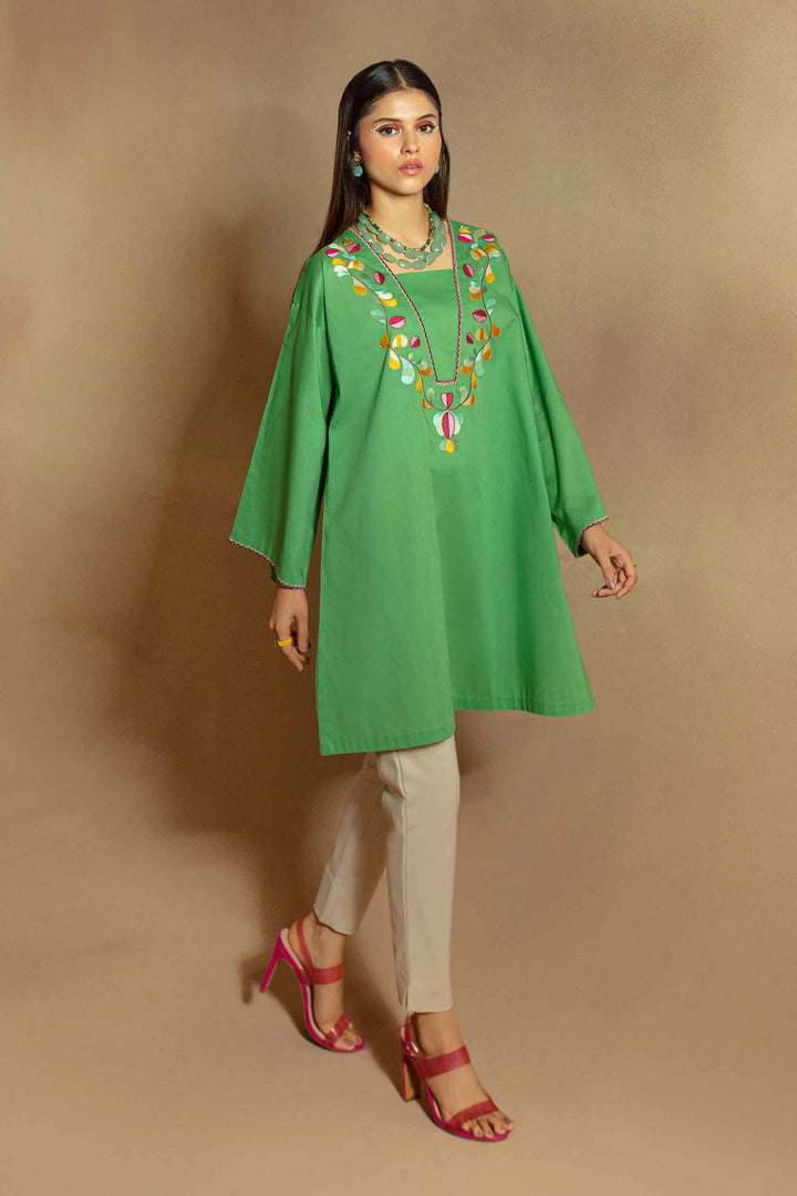 Unleash your inner sparkle with this stunning embroidered tunic from the latest aura summer collection.
