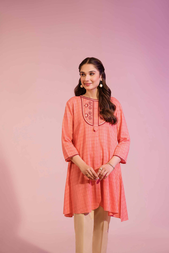 Look stylish unquestionably by wearing this embroidered tunic from the latest aura summer collection.