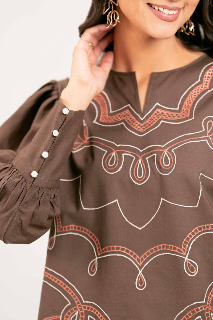 Round Neckline, Gathered Sleeves With Cuffs, Embroidered Tunic