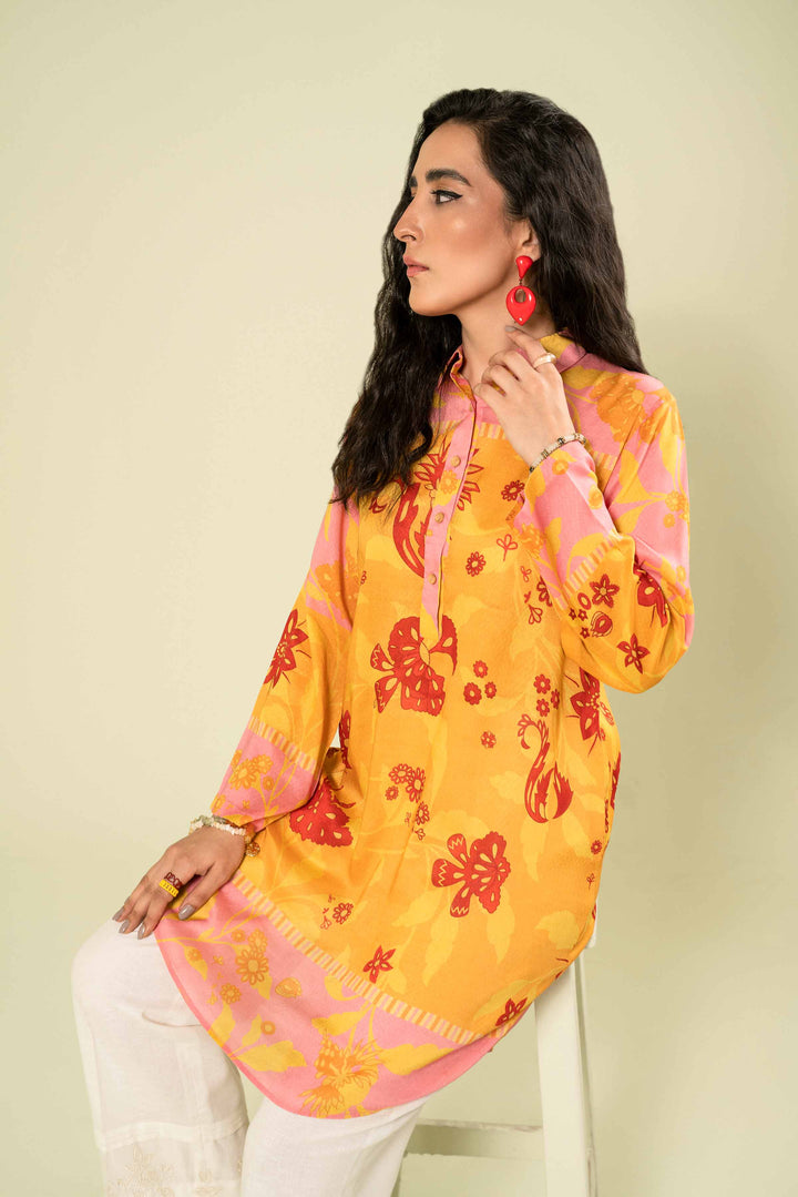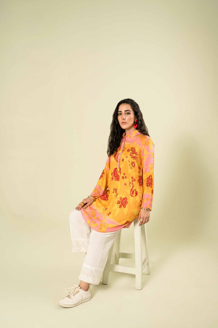 Collar Neckline With Button Details On Placket, Printed Front & Back