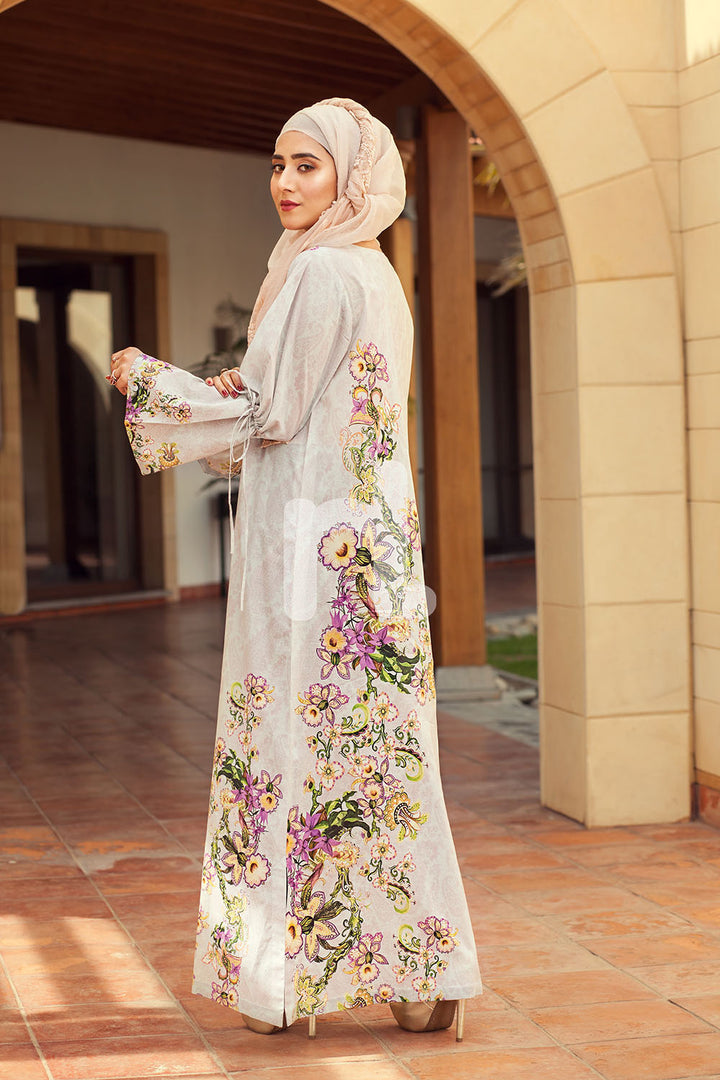 DE19-07 Off White Digital Printed Stitched Cambric Fustaan - 1PC