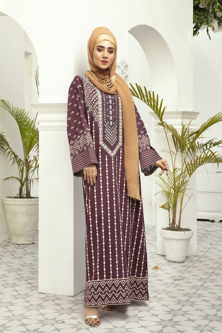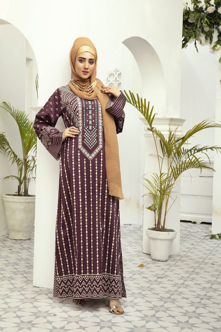 Classic brown colored printed stitched Fustaan from latest Eid 2020 collection by Nishat Linen to make you look modest yet trendy.