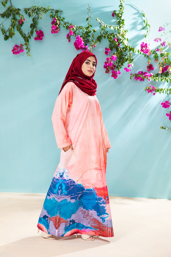 Straight armhole, hidden pockets loose silhouette with embroidery on sleeves. From Latest Fustaan Summer 2021 Collection by Nishat Linen.