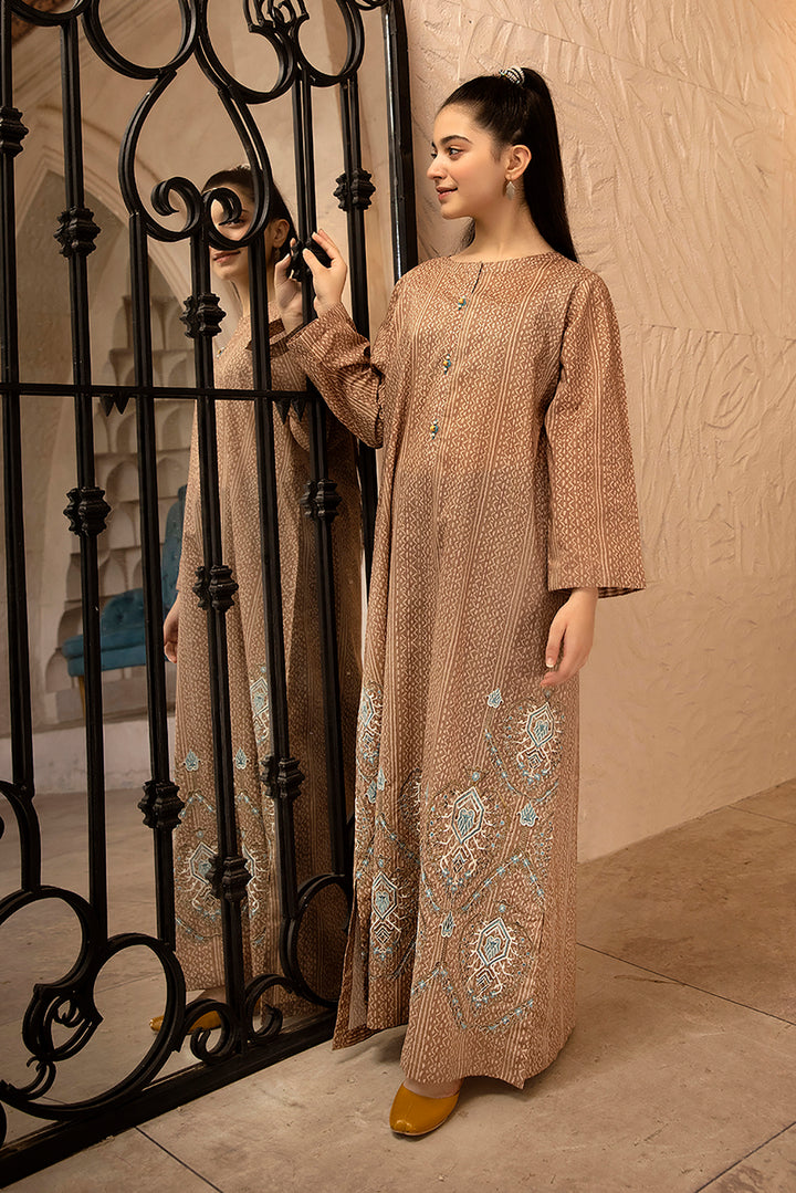 DS22-106-Flared Printed Embroidered Fustaan 1PC