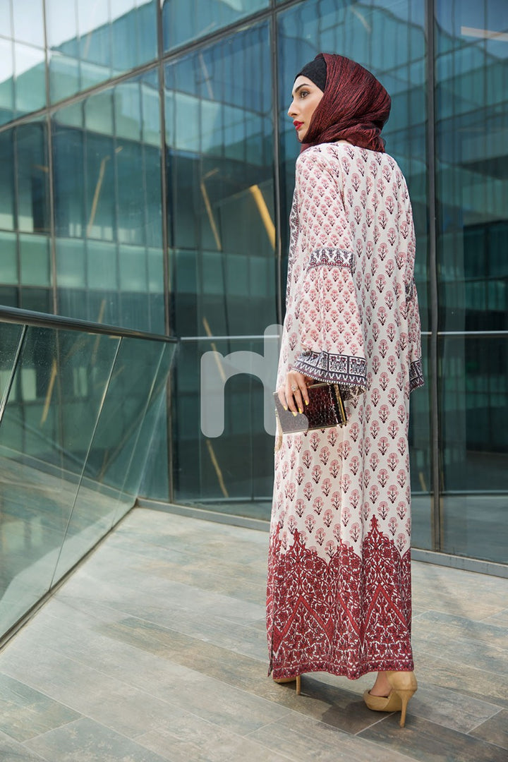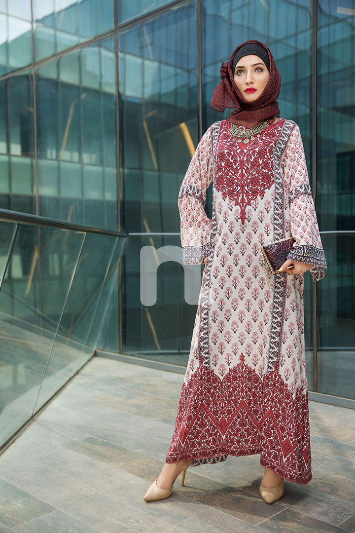 Elegant and refreshing red colored digital printed stitched lawn Fustaan; an ideal outfit by Nishat Linen Winter 18 collection to make you look stylish but modest.