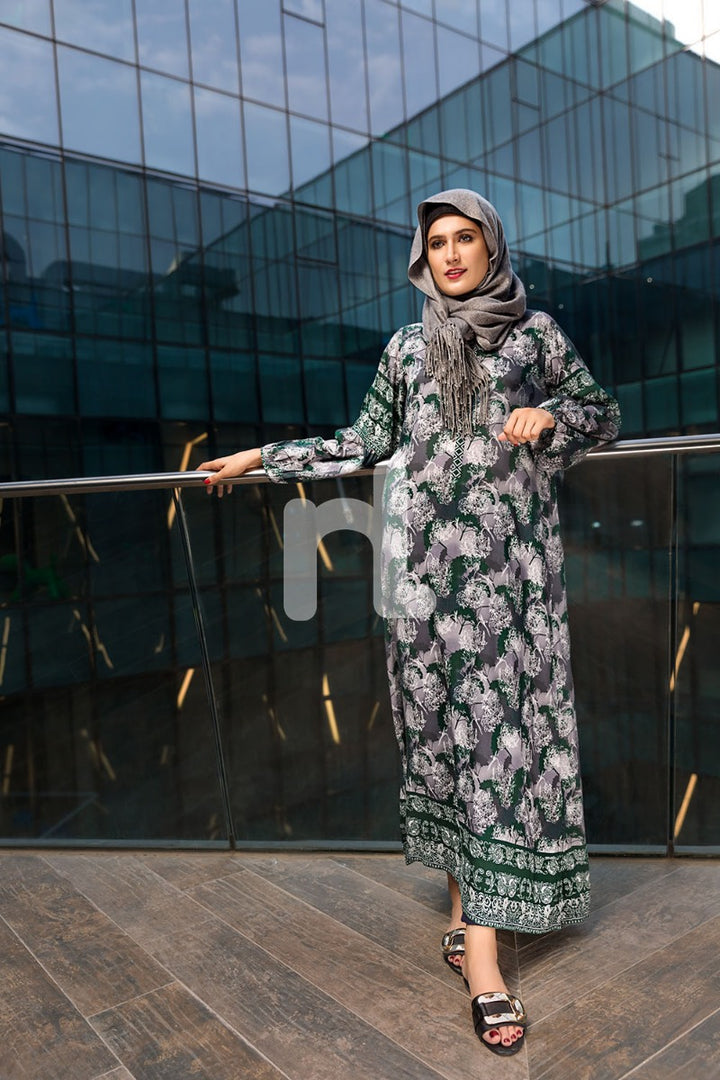 Classic grey colored digital printed stitched Fustaan by Nishat Linen Summer'19 collection to make you look modest yet trendy.