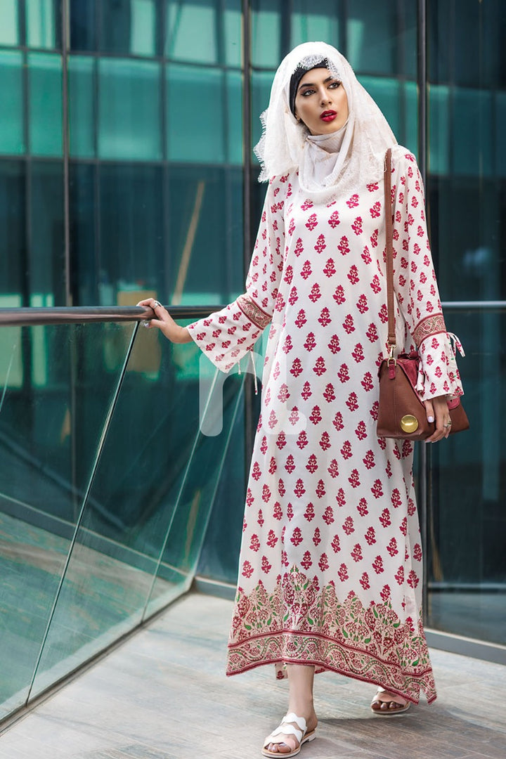 Contemporary and scintillating Off White colored digital printed stitched lawn Fustaan; an ideal outfit by Nishat Linen Summer'19 collection to make you look stylish but modest.