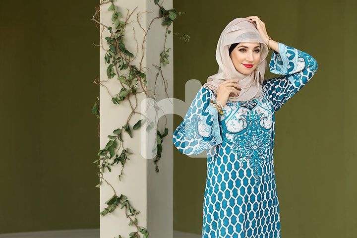 Contemporary and scintillating Blue colored digital printed stitched lawn Fustaan; an ideal outfit by Nishat Linen Summer'19 collection to make you look stylish but modest.
