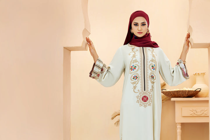 Classic off white colored printed stitched Fustaan from latest Winter 2020 collection by Nishat Linen to make you look modest yet trendy.