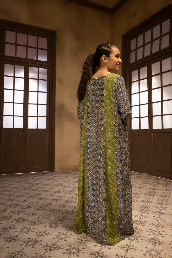 Achieve radiating festive energy by wearing this printed Fustaan from latest Fustaan Winter 2022 collection by Nishat Linen.