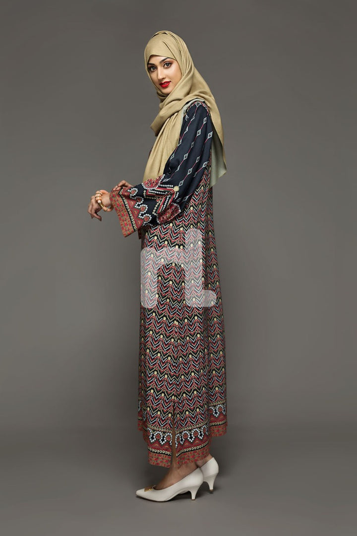 Elegant yet contemporary brown colored digital printed stitched modal Fustaan with Buttons on Neckpatti; an ideal outfit by Nishat Linen Winter 18 collection to make you look stylish but modest.