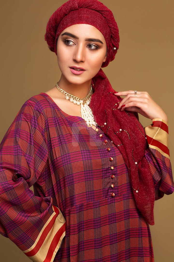 DW19-55 Orange Colored Printed Stitched Fustaan