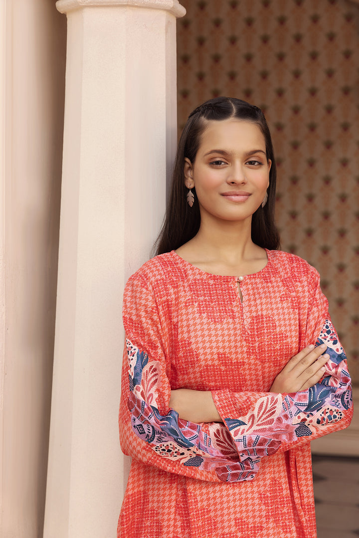 Dress up elegantly by wearing this printed embroidered Fustaan from latest Fustaan Winter 2022 collection by Nishat Linen.