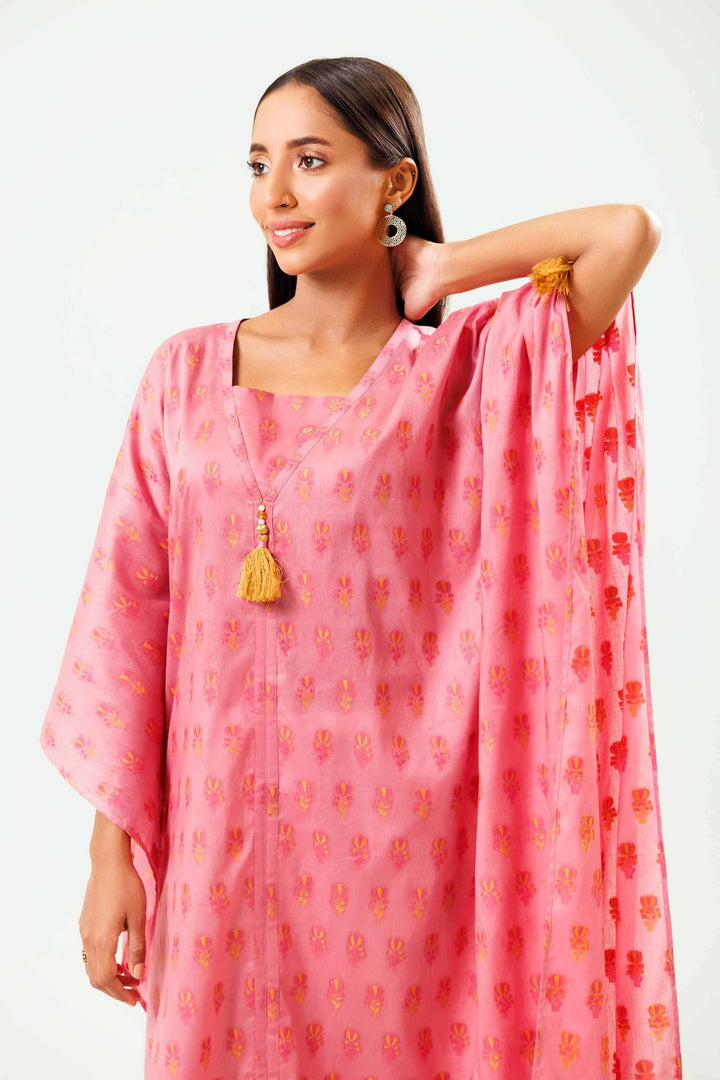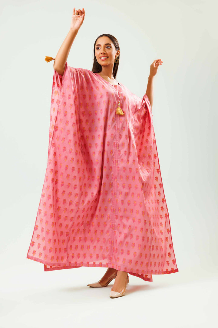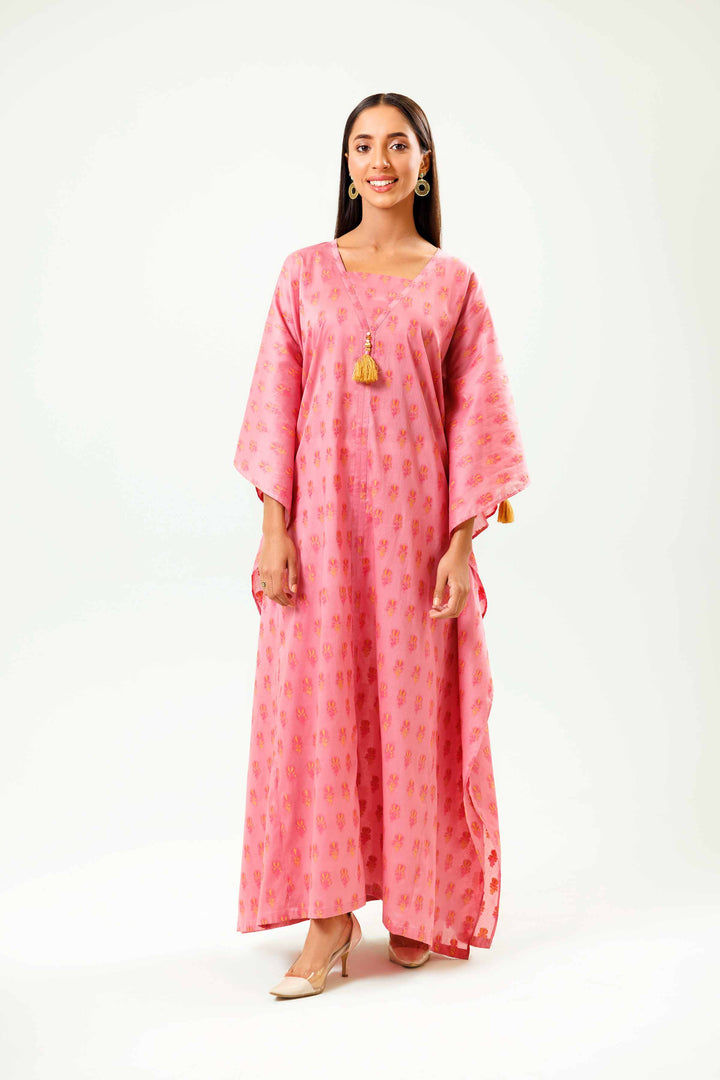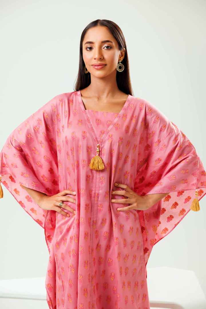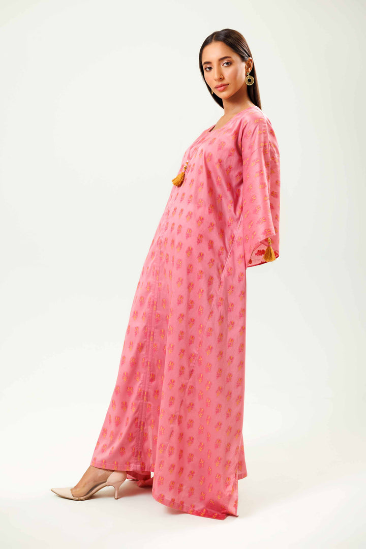 V Neckline With Gusset, Adda Work & Tassels Detail On Front & Sides, Basic Kaftan