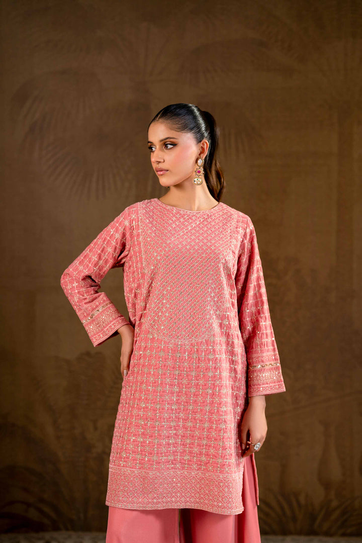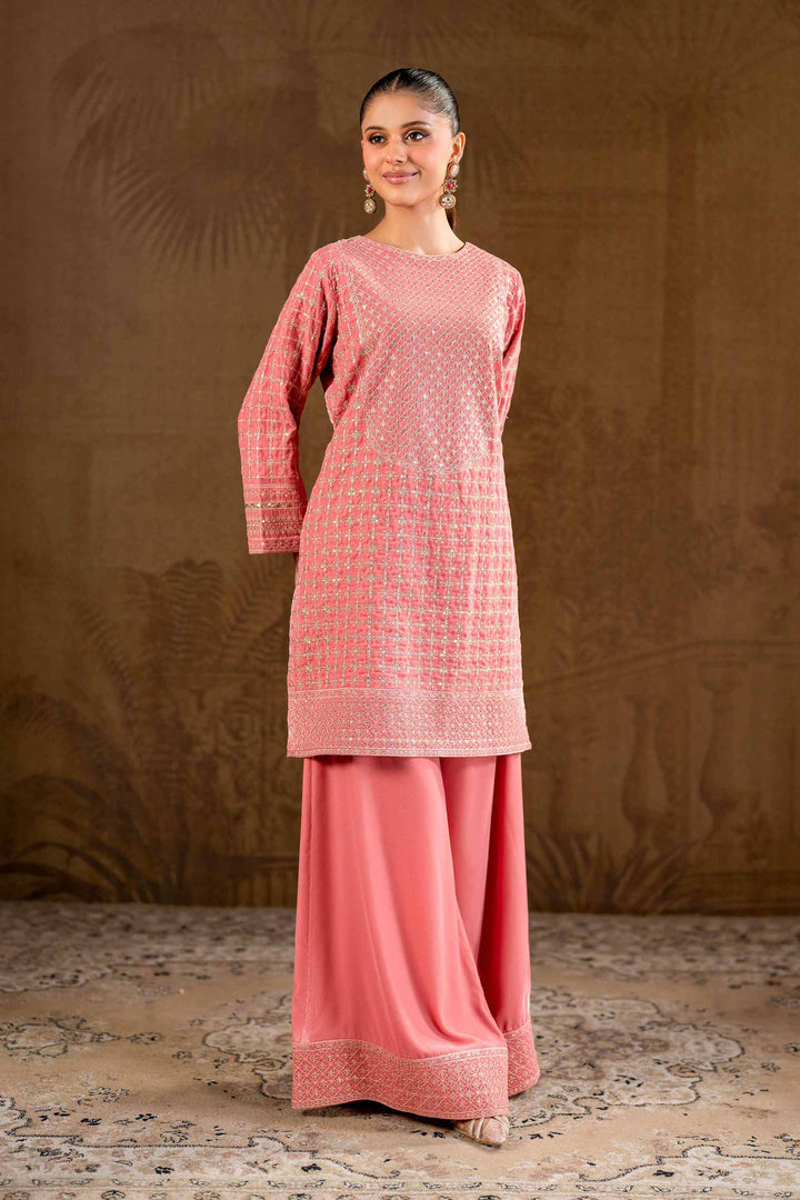 Add a sophisticated note to any style with this embroidered two-piece suit from the latest luxury pret winter collection.