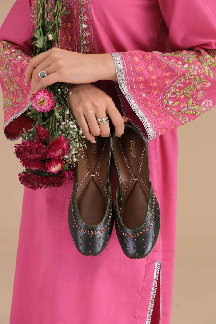 Elegant handcrafted Khussa adorned with fine threadwork detailing, blending tradition with everyday comfort. A perfect choice for a graceful look.