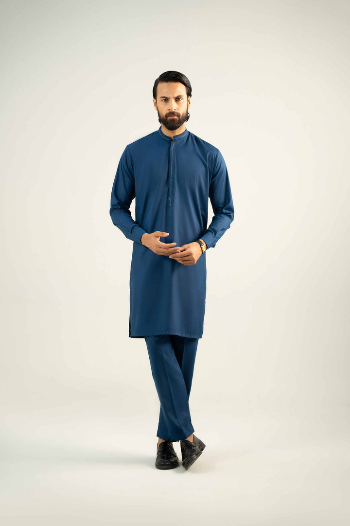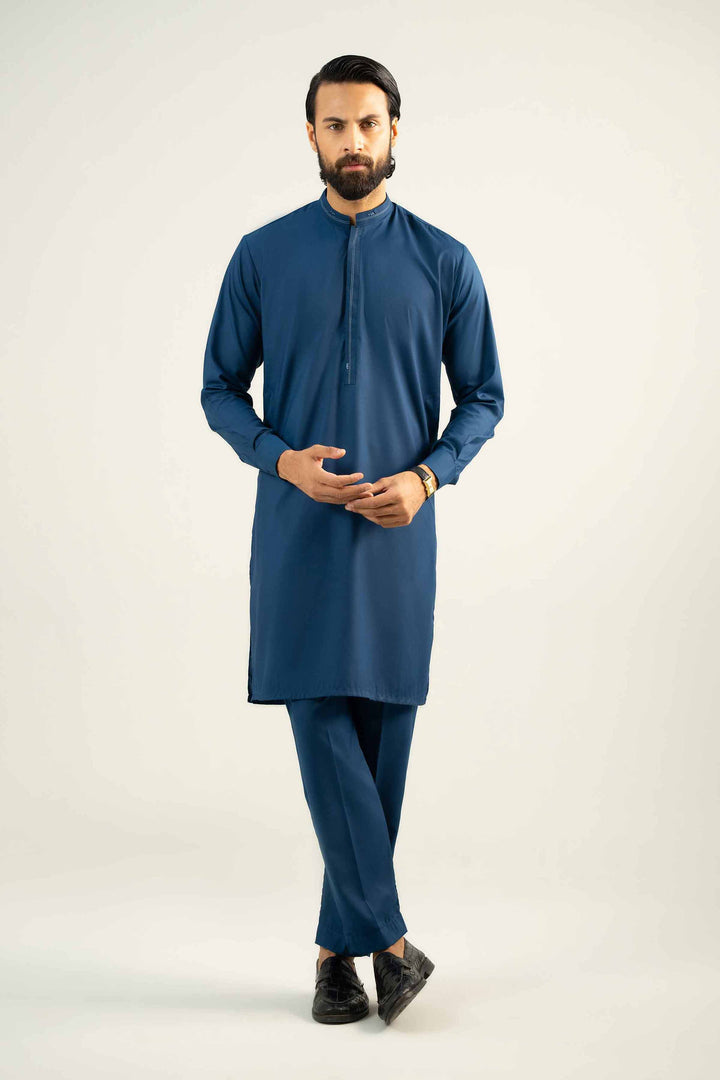 Elevate your everyday look with this basic two-piece suit from the latest men summer stitched collection.