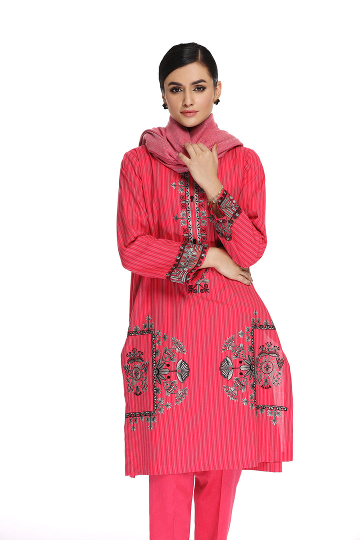 Catch unblemished beauty by wearing this embroidered shirt paired with shawl and trouser from latest Pret Winter 2021 collection by Nishat Linen.